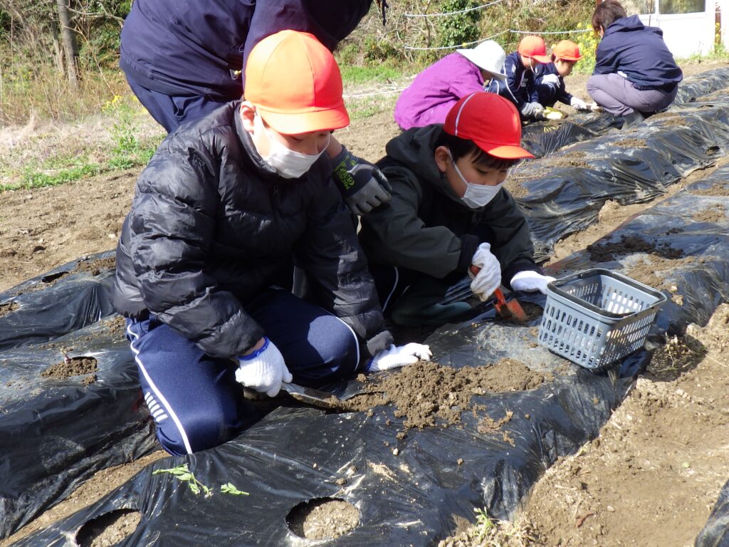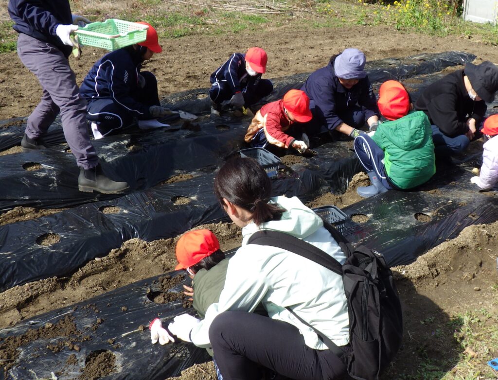 3月5日(木)に、小学部全員でみかんの家の畑にじゃがいもの植え付けに行きました。