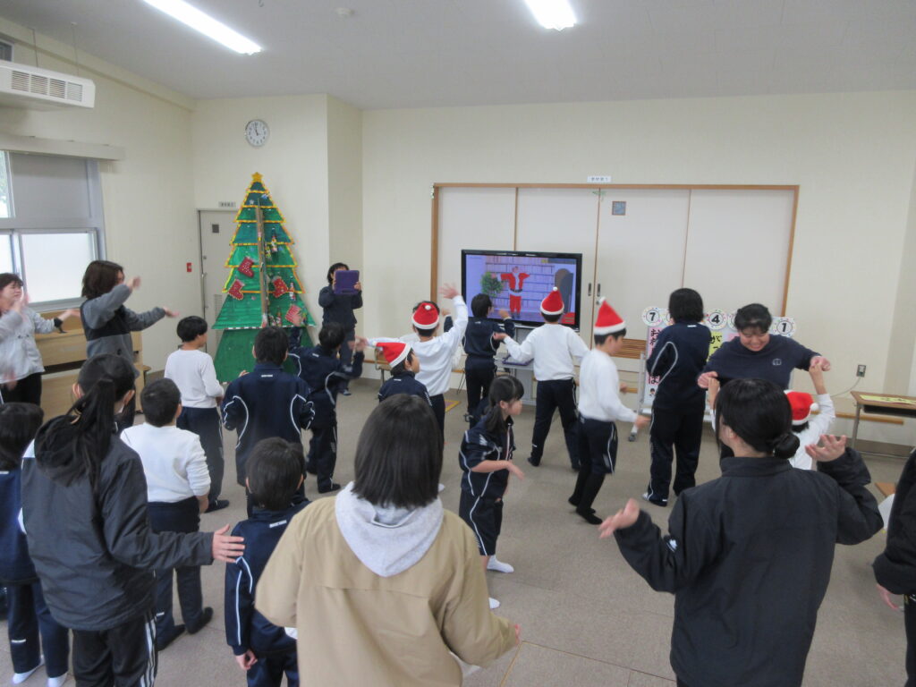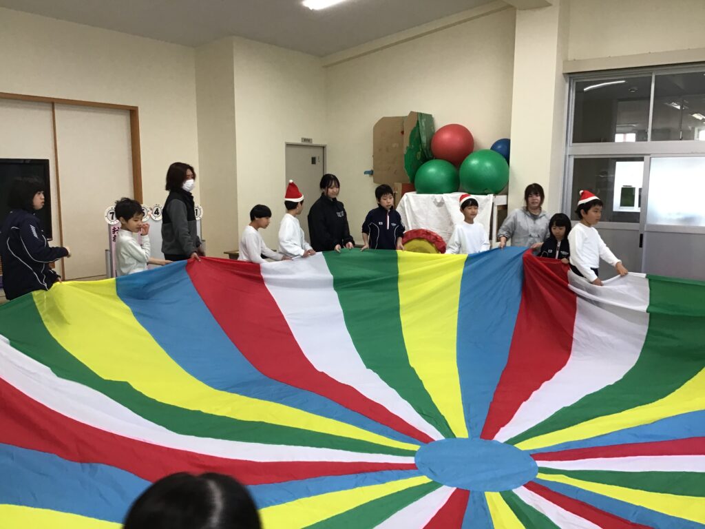 小学部のみんなで、クリスマスにちなんだ手遊び歌やダンス、パラバルーンなどをして楽しみました。